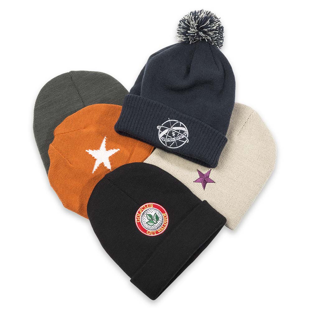 Gern fertigen wir aus einer großen Palette von Mützen eine bestickte Version, aber auch das beim Stricken sogleich eingestrickte Logo bieten wir gerne an