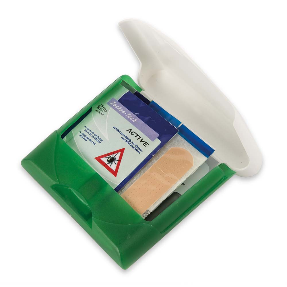 San-Kits sind in diversen Ausführungen erhältlich, so z. B. Traveller, Zeckenschutz, Erste Hilfe